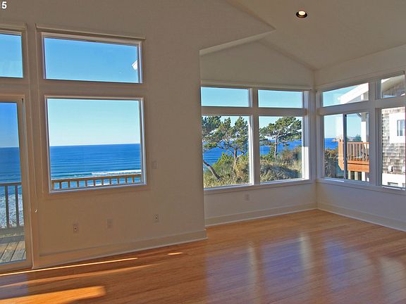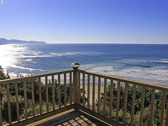 OCEANFRONT HIGH BANK pano/dramatic view incl whitewater waves rolling onto Netarts Spit & majestic 3Arch Rocks. Immaculate Kiwanda model with 2 master stes & large den, gleaming solid bamboo floor in greatrm, Bosch DW, high end frig, black slate entry, neutral stone tile frplc. Nicely sited for private feeling on oceanfront deck, just steps from beach stairs. Offset for more privacy. Fenced front yard with large deck. New roof in '08