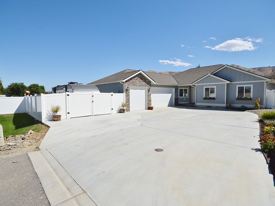 Wow,why buy new when you can get it all with this beautifully appointed 2017 immaculate rambler. 770 Sq Ft three car garage with fenced RV parking. Large outdoor patio and pergola. Fully fenced backyard and garden area. All the newest furnishings that includes a gas fireplace, Three bedroom, two bath and a office that are centrally located around the great room. Move in ready!