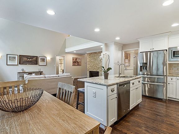 - Kitchen Features: Breakfast Bar, Eat-in Kitchen, Pantry, View to Family Room, Stone Counters, Kitchen Island, Breakfast Room, Cabinets White