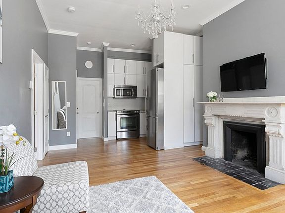 Sunny and elegant 1 bed/1 bath condo on the 2nd floor of a professionally maintained rowhouse situated in the heart of South End. This unit has an open concept expansive living and dining area accented by a marble fireplace and bow window overlooking Prudential Tower, and a modern kitchen with sleek cabinetry, quartz countertops, stainless appliances and tile backsplash. The bedroom is ample in size with a large closet. Renovated hardwood floors throughout. Other rare features include in-unit laundry and 12-foot high ceilings. Steps to MBTA stations (Green/Orange Line), restaurants, grocery stores, shopping, park and so much more. Quick access to I-90/93 and Storrow Drive. Pet friendly.