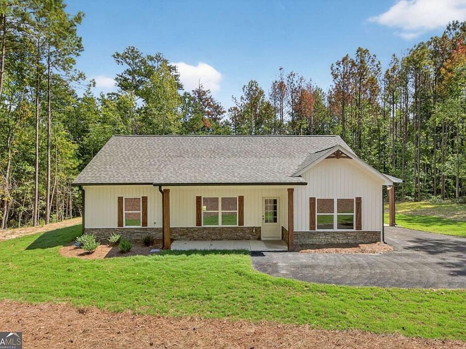 Construction is COMPLETED! Do not miss your chance to own a 0.75-acre lot with NO HOA! This gorgeous step-less RANCH home boasts an open-concept design with a spacious VAULTED family room. The gourmet kitchen features GRANITE countertops, a FARMHOUSE SINK, a large PANTRY, and stainless steel appliances, perfect for entertaining. The large master suite offers a private retreat with a beautiful ensuite bathroom featuring a double vanity, custom TILE SHOWER & a generous walk-in closet. Two generously sized secondary bedrooms offer ample storage space with large closets, complemented by a stylish full bathroom. Step outside to the covered back patio for your morning coffee, or relax on the rocking chair front porch. The CARPORT is an added convenience for all of your outdoor needs. Standard features include beautiful luxury LVP in the kitchen, living room, entry, and baths; plush carpeting in the bedrooms; and high-quality finishes throughout. Enjoy the freedom of a PRIVATE LOT with no HOA restrictions, combining tranquility with convenient access. Minutes to Rockmart, Dallas, & Hiram! Not quite the right floor plan? We have other options & LOTS available! Contact us today for further details! Be sure to inquire about our $8,000 FLEX CASH INCENTIVE! This home is Eligible for CONVENTIONAL, FHA, USDA, and VA financing. Act now and take advantage of an $8,000 FLEX CREDIT when using our preferred lender, Gareth Thomas with Silverton Mortgage! This credit can be used to buy down your interest rate (as low as 5.25% on a 30-year mortgage), cover closing costs, upgrades, or anything else the Buyer desires.