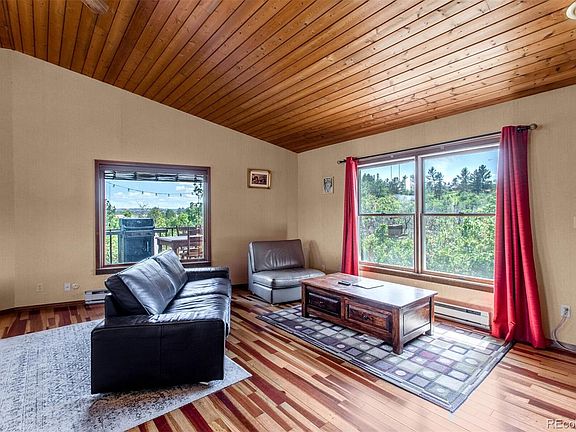 Here, home is a sanctuary - a 365-day retreat secluded on almost 5-acres provides comfortable mountain living only minutes from town. From the upper deck, enjoy the lush outlook of rolling hills and a distant meadow. Enjoy a fantastic location quietly set in the rear of the neighborhood plus 80-acres of adjacent reserved land adds to the privacy and seclusion. With 5 bedrooms, a remodeled kitchen, solar panels, and an oversized 2-car garage, this home is just as wonderful as the location it sits in, plus the property is zoned for horses! Inside, main-floor living thoughtfully takes advantage of the picturesque setting from every room. The living areas are enhanced by vaulted tongue-and-groove ceilings with an open floor plan of the kitchen, dining area, and great room, all anchored by hardwood floors and the wood-burning fireplace. Entertain in the large open kitchen featuring granite countertops, an island, a double oven, and plenty of counter and storage space. You and your guests can wander out to the adjoining covered deck to enjoy the magnificent surroundings while having plenty of space to relax. The master suite gives you the privacy and peace you crave after long days. Enjoy large windows, a built-in desk, plus an en-suite bathroom with a granite vanity, dual sinks, plus a laundry shoot. The spacious lower level features a rec room with wood burning stove, 2 additional bedrooms, a ¾ bathroom, a storage and laundry room, plus access to the oversized garage featuring a workbench. If owning animals is your calling this property is well equipped! A fenced pasture area is home to goats and includes a neighboring chicken coop, plus the property is zoned for horses and is perfect for grazing. A new utility shed includes a loft and has been upgraded with extra insulation and heavy-duty floors, perfect for oversized toys. The driveway is gated for extra security. Experience the peace and quiet the mountains of Colorado have to offer.