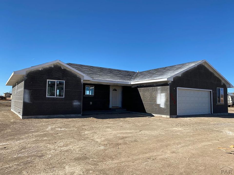 Brand new Pueblo West construction with 3 bedrooms, 2 baths and an oversized 2 car attached garage. The property offers 1,428 square feet, granite counter tops and stainless-steel appliances on a large 1.36 acre parcel. The builder has spared no expense and included subtle touches such as wooden window sills, insulated garage door, Armstrong furnace and 50 gallon water heater. This property is under construction with an anticipated completion date of late February. The lot dimensions are different on each side but total 1.36 acres. Kitchen and living room measurements are combined as this property offers an open floor plan.