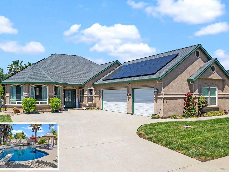 Immaculate home with a POOL, 2024 ROOF, OWNED SOLAR and a luxury OUTDOOR KITCHEN! Beautiful custom home featuring an eye catching layout with natural light throughout, CHEFS KITCHEN, with a 6 burner stove, prep island, wine fridge, stunning custom cabinets, and two dining spaces to enjoy! Spacious Master Suite with a large walk in closet, soaking tub, double sinks, and more. Check out the ENTERTAINERS DREAM back yard. Stunning Gunite pool with water features, expansive patio with multiple areas to sit back and relax. This home has it all! Don't wait, come see this home today!