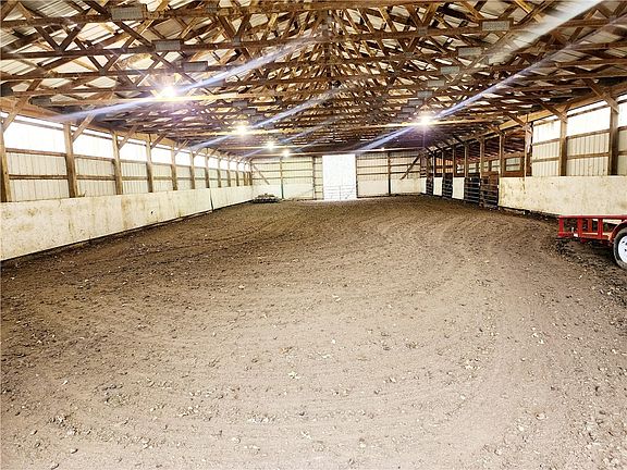 mud room, easy access integral garage for unloading groceries. 2 Bedrooms on the second floor are great for children or guests. Game room with a wood burner perfect for a cozy winter. The Game room has French doors that lead out to the wonderful yard & the Stables. There are 4 stalls, tack room/ feed room, and a 47x150 indoor riding arena with lights and a frost-free hydrant. There is a nice, wooded area behind the riding arena. This home is perfect for the person that wants to come home from work and ride no matter what the time & weather. OPEN HOUSE SUNDAY 3/19/23 11 to 2 pm