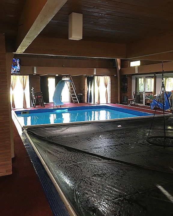 Spacious 5 bedroom, 4 1/2 bath ranch home with indoor heated 18 X 40 in- ground pool, poolroom bathroom with shower, and cedar sauna room with new heater. Pool was refinished, glass block windows and tiled around the parameter in 2023, ventilation system, and large wall-mounted TV. Entire interior professionally painted in 2019. All new toilets, vanities, bath tubs, and refrigerator. Home warranty that includes pool room, pump and heater. Pool converted to salt water but can easily be converted back to chlorine if desired. Large cedar sunroom adjacent to pool room with brand new sliding windows and screens. Cedar patio furniture included. Huge updated workshop between garage and pool room. Must see to believe!