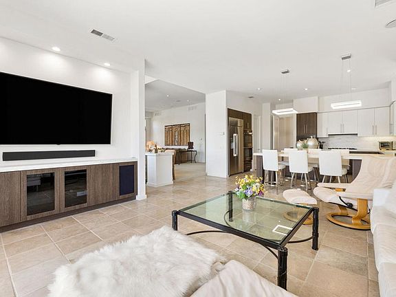 This elegant Ocotillo 3G model offers stunning lake, mountain, and golf course views from the back patio. With a private pool and spa, an attached 1 bedroom, 1 bath casita, and a Golf Membership available with NO WAIT, this home is ready for the upcoming season and is move-in ready. The elevated patio features multiple dining and lounging areas, including a built-in BBQ. Inside, the living room impresses with high ceilings and a cozy fireplace, while the adjacent dining room showcases a stunning light fixture. The completely updated kitchen boasts new cabinetry, marble countertops, a spacious island, contemporary lighting, and high-end appliances, along with a counter bar seating six. The family room, which opens to the kitchen and patio, is highlighted by a wall-mounted 77″ TV, sound bar, and new built-ins. The master suite includes a double-door entry, sitting area, and an updated bathroom with quartz countertops, frameless illuminated wall mirrors, and two walk-in closets, one of which is oversized with excellent storage. One guest suite has a bathroom with quartz countertops and accent tile in the shower, while the second ensuite guest room, currently used as an office, features built-ins, a pull-out sofa bed, textured wall coverings, dual sinks, a shower, and a walk-in closet. This home is offered fully furnished with stylish designer finishes, providing the perfect blend of elegance and modern convenience in a prime location.