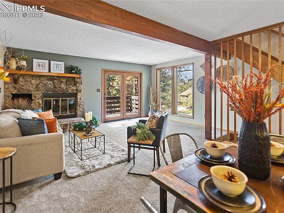 Centrally located within Woodland Park in the peaceful Paradise neighborhood. There is abundant wildlife to enjoy...chipmunks, squirrel, fox and deer visit frequently! Pikes Peak views from the front deck and open woods from the rear deck. This 3 level townhome is just the right size with 1,482 sf. There are 2 bedrooms and a bath on the upper level and a lower level bonus room that could be bedroom 3. On the main level is the open concept living, dining, kitchen plus guest bath. There is also a 1 car garage with room for a workshop or additional storage. Upgrades include: roof replaced-2011, tub faucets replaced-2015, water heater replaced-2018, garage door replaced-2020, toilets, kitchen counter tops, bathroom sinks & fixtures, closet doors, all carpet, baseboards, various light fixtures, front and back screen doors, refinished kitchen and bathroom cabinets, Freshly painted entire interior-2023 Exterior maintenance is scheduled for summer 2024. Don't miss this one. Stop by and see us today.