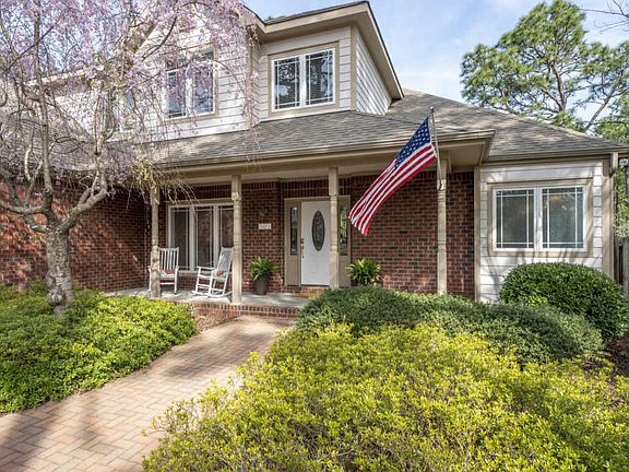Beautifully maintained 5/3.5 situated on fully fenced .65 private lot with pool mins from downtown Southern Pines. Soaring sun-filled windows, formal dining room, living room w/surround sound and gas fireplace, hardwood floors, eat-in gourmet kitchen with gas cooktop, double oven, breakfast bar, built in desk, walk-in pantry, large butler's pantry and laundry room w/ built in storage, master suite on main w/ double sinks, vanity, whirlpool tub, tile walk-in shower and walk-in closet. Generous bedroom sizes and deep closets throughout. 2008 renovation features huge game room w/ built in wet bar, 5th bedroom and full bathroom - perfect for in-law suite. Airy screened in porch overlooks backyard paradise. Sparkling salt water pool w/ fountain, lushly landscaped fenced yard, detached storage.