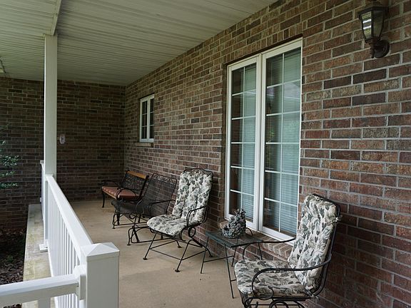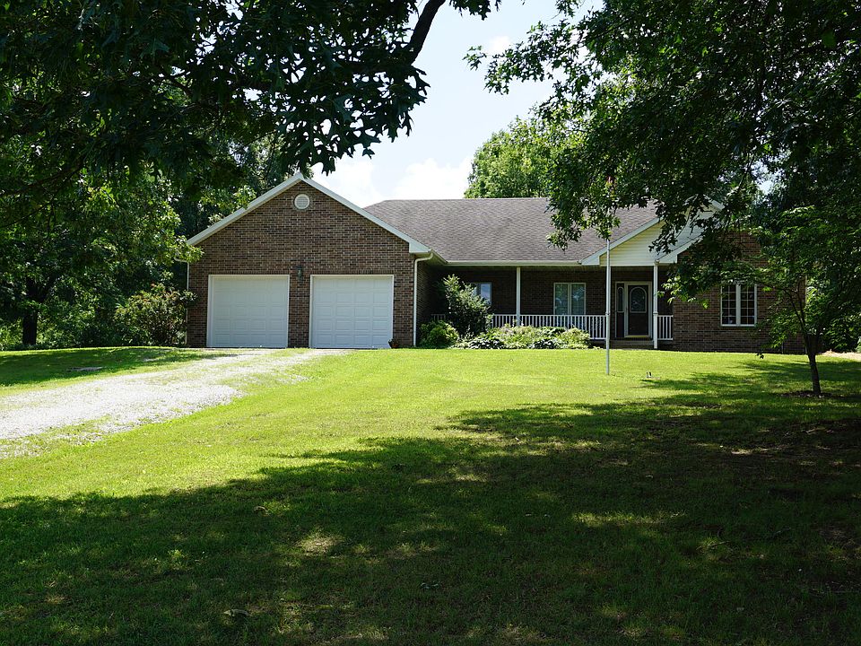 This lovely all brick, one owner home has been lovingly cared for & maintained through the years. Situated on just under 5 acres, it features 3 bedrooms & 3.5 baths. It has an open floor plan w/ living area & kitchen open to each other. Berber carpet is in the living room & tile in the kitchen and dining area. Living room has a gas fireplace and kitchen has white appliances, oak cabinetry and an eating bar. The 3 bedrooms feature a split plan w/ walk in shower in the master suit & tub/shower in the guest bath. A utility room & half bath round out the main level. The unfinished walk out basement has a full finished bathroom with shower & John Deere room w/ garage door. Special features include water purifier, filtration system & central vac. In back is a deck w/ roll out awning, sidewalk
