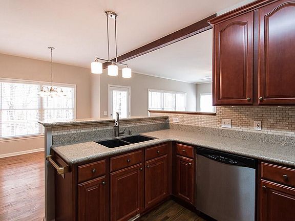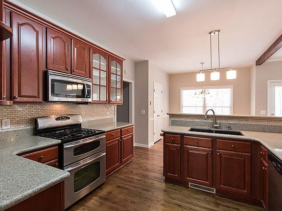 - Kitchen Features: Cabinets Stain, Pantry, Eat-in Kitchen, Stone Counters, View to Family Room