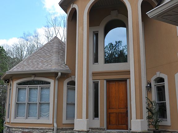 Quiet private gated 5.2 acre property with circular driveway. Port cochere drive under in front with 4-car side-entry garage. 2 Master bedrooms-1 on Main with walk out to deck and jetted bathtub; and one master on upper level with jetted tub. Four full and 2 half baths; Full basement finished at the time the home was built. Built in theater, and bar in basement. Wrap around decking, patio, 45 gallon salt heated pool with spa, double ovens, 11 zone sprinkler system, flood lighting in front yard, Gated-controlled access property with service entry gate. Basketball court, In ceiling speakers throughout basement; intercom system throughout home. Security and fire features.