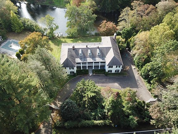 Location, Location, Location! Classical and elegance defines this sun-filled five bedroom colonial property. This home is beautifully sited on 2 private acres with pool and lake views. The views of a picturesque lake could be appreciated from almost every room and enjoyed from the stone terrace and balcony. The level, private yard and inviting pool makes this property unique. This 7194 square foot home features; formal living room with fireplace and French doors to patio, library with custom built-ins, wet bar and French doors to patio, formal dining room with custom built-ins and French doors to patio, office with built-in desk and entertainment center, family room with stone fireplace, window sit, and French doors to patio, spacious eat-in country kitchen with stain steel appliances and an oversized island. The master bedroom has vaulted ceilings, fireplace, 2 full bathrooms and his/her walking closets and French doors to balcony, the other 4 spacious en-suite rooms have walk-in closets and french doors to balcony. Not to forget the 3 oversized car garage and double entry gated driveway. Conveniently located in mid-country and within minutes to all town amenities such as restaurants, country clubs, library, train station and schools.
