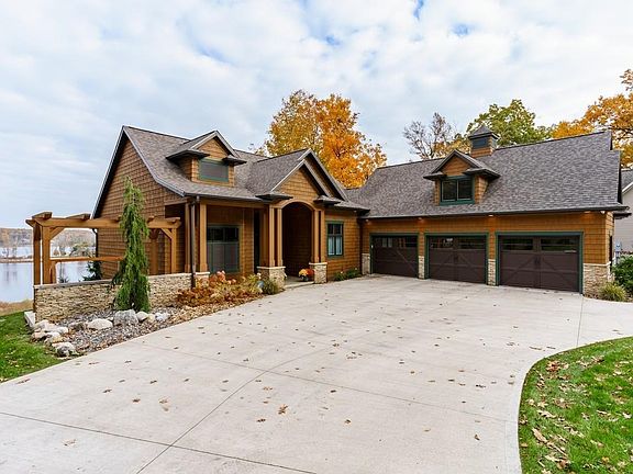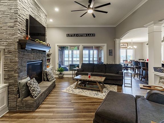 Spectacular "Star Homes" ranch on a walkout basement, built in 2018. 140 feet of lakefront with far reaching lake views. Three bedroom suites with their own full baths & walk-in organized closets, two half baths and a three car attached garage. Everything about this home is high quality and well planned. Luxury vinyl plank flooring throughout. The foyer leads into the open concept great room, kitchen and dining area. The great room has a stack stone gas fireplace, built in cabinets/shelving, columns and arched headers. The kitchen has custom cabinetry, granite counter tops, an island breakfast bar, a large walk-in pantry. The dining area gives way to the lakeside 3 season room. The main level master suite is lakeside and has a wood accent wall and sliding barn door to the bathroom. The master bathroom has a double sink vanity with granite top, custom walk-in tile shower, tile flooring and leads to a large walk-in closet with organizers and built-in drawers. There is a main level half bath, laundry room and lots of storage. The attached finished (mancave) garage is extra deep providing a workshop area with an epoxy floor. A walk up unfinished bonus room over the garage is used for additional storage, but could easily be finished. The lower level family room has a 2nd gas fireplace and kitchenette/wet bar with full size refrigerator and under the counter ice maker. You'll also find an exercise room with 2nd laundry, a half bath and two bedroom suites with their own full bathrooms and walk-in closets. The lower level walks out to the covered patio with built-in fire pit and views of Little Otter and Big Otter Lakes This is part of the Lake James chain of lakes. A 10 minute boat ride from here to Snow, James & Jimmerson lakes. Easy access to your dock via the golf cart path (no steps) Excellent fishing and swimming. The pier is included. Most furniture and furnishings can be purchased outside the sale of real estate making this a turn key home!