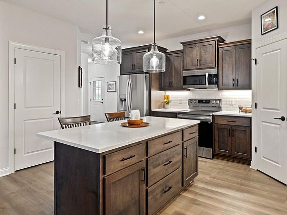Experience maintenance-free, single-level living at its best! This end unit provides serene wetland views, creating a peaceful backdrop for daily life. Boasting over 2,500 sq ft, the residence offers ample space. The gourmet kitchen features quartz countertops, under-cabinet lighting, a pantry with custom shelving, and a beautiful ceramic tile backsplash. The master suite includes a roomy walk-in closet with custom organization and an ensuite with dual vanities. The main-level deck, equipped with a power Sunesta awning, enhances outdoor comfort. The finished walkout basement adds two bedrooms and a family room, ideal for guests. Enjoy countryside tranquility with easy city access via Hwy 212. This home embodies modern elegance and convenience.