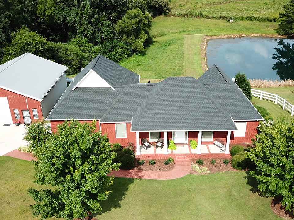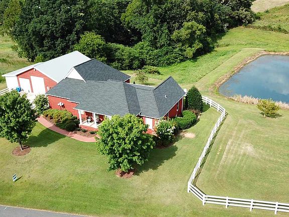 Exquisite details abound in this custom, full brick 3 bedroom home w/an office, security system & safe room! Very open floor plan w/split plan bedrooms have master suite on opposite side of house. Hardwood flooring, crown molding, custom cabinetry, granite counter tops, travertine flooring/showers, & Anderson windows. Home generator ensures you don't have to worry about a power outage. Approximately 44X40 workshop/RV garage with attached two stall barn--use as is, or configure to suit your needs. The outdoor porch overlooks a beautiful stocked pond. Vinyl fencing around most of of the property. You really must see for yourself all of the unique characteristics of this home.