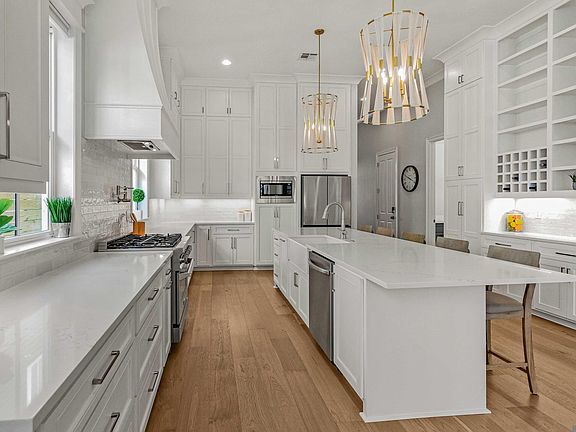 - Features: Cabinets Custom Built, Stone Counters, Kitchen Island