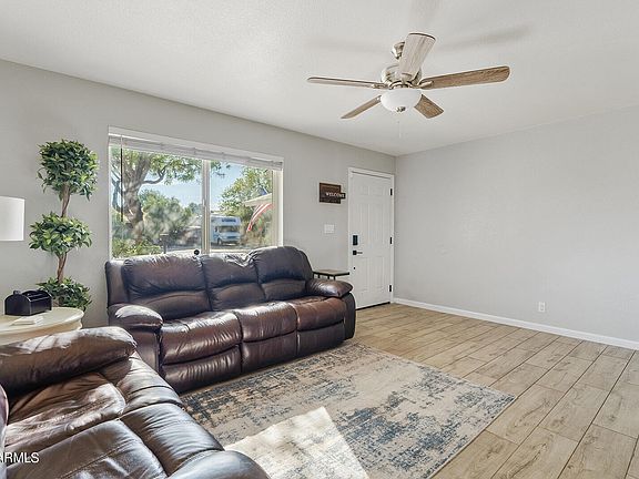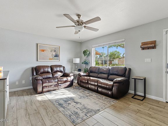 Beautifully updated home in fantastic Chandler location! This three bdrm, 2 bath home features 1 car garage w/ additional workspace, 1 car carport, large backyard w/ outdoor kitchen, & spacious covered patio. Inside the living spaces have large format wood plank tile, designer paint accent walls, white kitchen cabinets w/ granite counter tops, SS appliances and fishbone backsplash. There is a large living room & additional family room off the kitchen. Other updates include dual pane windows, newer dimensional shingle roof, updated bathrooms w/ tile surround in primary bdrm, ceiling fans in living room & bedrooms, and recessed lighting in the kitchen. The seller is offering a $5,000 concession towards buyers closing costs with full price offer so be sure to see this home before it is gone!
