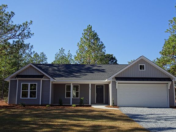Newer home 3 BR 2 BA single level with open floor plan. The Flex room adds an office, craft room or den. Beautiful kitchen with center island/ breakfast bar and a huge pantry. Appliances include refrigerator, microwave, DW and stove. Laundry includes Washer Dryer Connections Only and handcrafted cubby storage. LVP throughout. Two covered porches and a large Unfenced yard. All BR offer lighted closets and ceiling fan. Easy access to highway for easy commutes to Aberdeen, Pinehurst and Southern Pines. 7 minutes from areas shopping and restaurants. This built in 2021 Home is a must see! Photos taken in 2021. Tenant pays utilities, waste management. Pet on approval. No Smoking. Park in designated driveway and garage only. No RV / heavy equipment parking. Tenant maintains lawn, shrubbery, gutters. Property management is related to owner. Tenant pays tenant agent.