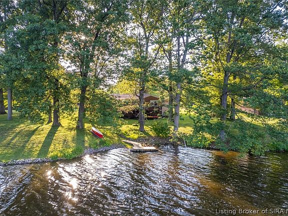 Homeowner passing on their canoe, paddles, and deck furniture for your enjoyment. 4 x 8 Dock with a 13' walking extension. Enjoy the vegetables and herbs from the planted raised gardens. Blueberry bushes and peach trees a part of the landscape. Pump by the lake for watering the flowers and raised gardens. Winter months enjoy not only the view from the family room but the ambience of the wood burning fireplace. Basement is a great storage area but also serves as a storm shelter. Several upgrades to the home which shows pride of ownership.