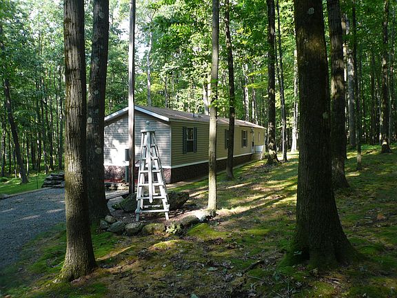 2 bedroom, bathroom with soaking tub and separate shower, eat in kitchen that looks out to open living area, cement patio out back with large landscaping stones. Located in beautiful wooded and private 8 acres. Can be used all year round as home or camp. Large closets and plenty of storage in kitchen. New hot water tank, spring house, 320 gallon propane tank, well, septic. Includes 2 storage sheds, new patio furniture, grill, plates, utensils, table and chairs.