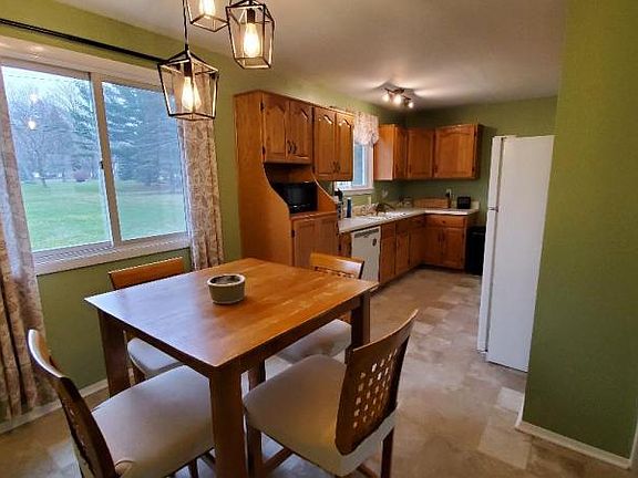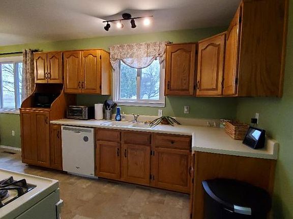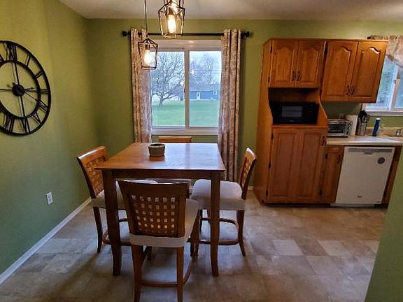 Gorgeous, beautiful and well cared for best describes this 3 bedroom home located on a spacious corner lot and is in turn key condition! Once inside this updated home you will notice the stunning kitchen with beautiful oak cabinets and stylish vinyl flooring that leads you into the homes dining area. Dining area is off the spacious living room offering natural lighting, updated flooring and access out to the front porch. Remodeled full bath with tiled shower is located in-between all 3 bedrooms upstairs and beautiful decor and tasteful colors have been added over the last few years. Full basement has been recently remodeled and offers a spacious family room, planked flooring throughout along with a kitchenette, dining area, laundry and storage room. Attached garage and asphalt drive offer plenty of parking space and don't forget that this home sits on a corner lot and offers a large back yard!