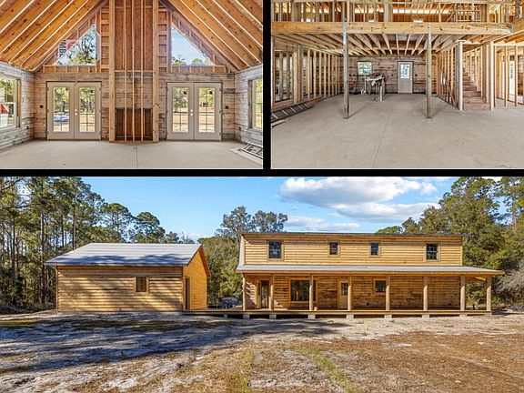 This newly constructed log cabin, built in 2024, offers a rare opportunity to create your dream home while building instant equity. With 3 bedrooms, 2.5 bathrooms, and a dedicated office, this home is thoughtfully designed and wholesale priced, offering over $100,000 in equity. It's an ideal choice for anyone looking for a customizable project. Please note, it will be the homeowner's responsibility to complete the interior finishes. The exterior is fully completed, featuring a 26-gauge galvalume metal roof, aluminum soffit and fascia, and double-insulated Low-E vinyl windows with a bronze exterior and white interior. The exterior staining is left for the new owners to personalize. The home's plumbing, electrical, and fireplace are roughed in, and a $40,000 custom cabinetry package, safely stored off-site, is included in the purchase and ready for installation. The final interior finishes, including layout adjustments and color selections, are up to the new owner, offering full creative control. Set on three fenced acres with dual access points at the front and back of the property, the land provides privacy and space for outdoor living. A two-car garage adds functionality, making this property as practical as it is beautiful. Located just 1.6 miles from the public boat ramp on the Suwannee River, this home is perfectly situated for those who enjoy fishing, boating, or exploring the river's natural beauty. Old Town, Florida, is a charming community surrounded by natural attractions, including the Suwannee River, local parks, and scenic trails. It's a peaceful retreat with easy access to outdoor activities and small-town amenities. This is an incredible opportunity to own a log cabin home on a large property with significant equity and room to make it your own. Don't miss out on this one-of-a-kind property!