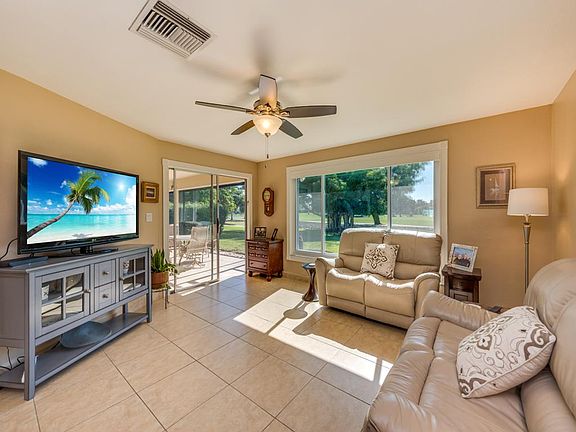 Take a look at this spacious residence with gorgeous views of the Island Country Club golf course and western exposure! With neutral décor, this home offers a living room, family room, 3 bedrooms, 2 baths, many upgrades including tile flooring throughout, light and bright newer kitchen with quartz countertops, new appliances, upgraded baths, extra shelving in guest bedroom closets, new energy efficient double-pane windows, a tiled garage floor & brand new garage door and all new landscaping for terrific curb appeal! Plus, there is plenty of room to add a large pool! Enjoy the peaceful park-like setting, watch the golfers, relax to the watercolor sky sunsets and nature from your own backyard! This is a MUST SEE home in an excellent location!