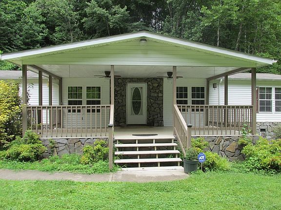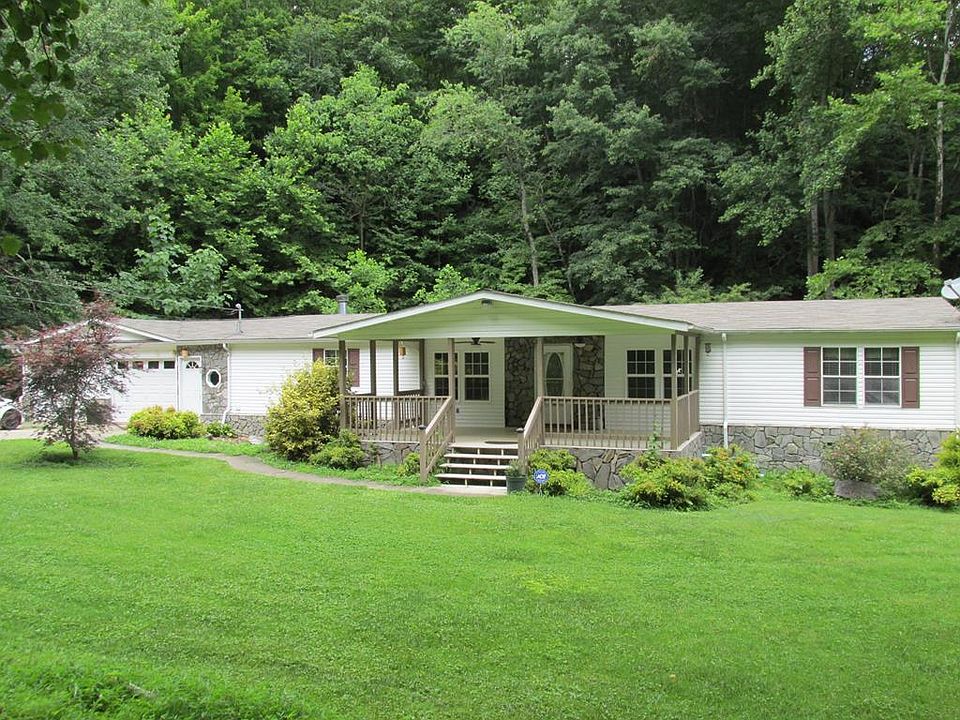 Large manufactured home that doesn't live like a doublewide. Previous owners added an oversized two car garage along with enlarging the living area. New kitchen appliances. Two gas log fireplaces. Home security system. House sits right beside Nations Creek, with a deck spanning the creek. New roof in 2018. Circle driveway, one side concrete the other gravel. Large covered front porch and large deck in back with a private picnic/horseshoe/cornhole area. Large flat yard, plenty or room for a garden. Great location, less than ten minutes from Sylva, Cherokee or Bryson City!
