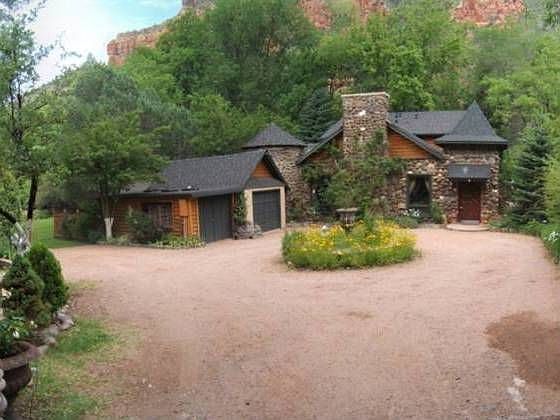A Chateau in the Canyon ~ Dreams do come True!!! Creek frontage on 1 side, Nat'l Forest on 2 sides provide privacy for this enchanting home. Huge patio and all you could want for relaxation or entertaining overlooking Oak Creek. The best of everything accents this unique home for the discriminating buyer.