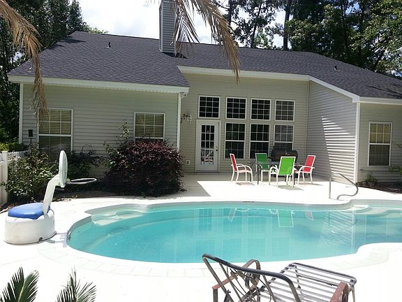 Wonderful home, situated on .30+ acre lot in the desirable Legend Oaks golf course community. As you enter the home, you will be amazed with the openness and gleaming wood floors, this plan offers formal living/study with french doors right off of foyer, formal dining that flows to the kitchen and family room making it great for entertaining. The family room features wood burning fireplace,top line tv mount, exterior wall lined with windows for lots of natural light and allows inviting view of the in ground pool. Spacious & open kitchen includes lots of cabinet, island, large breakfast bar and eat in area. The deluxe master bedroom offers privacy on one side of home and french doors leading to pool area. Pool professional cleaned and ready for summer. Secondary bedrooms offer jack and jill bath with separate vanity area. Being sold in as is