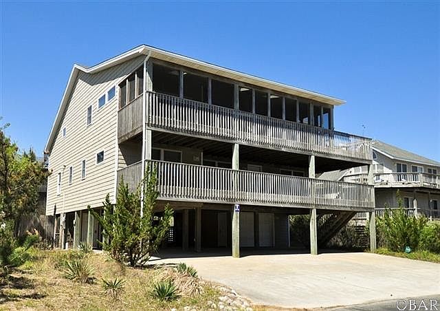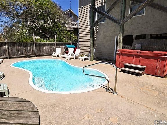 COROLLA SEMI-OCEANFRONT! Section D in Ocean Sands with beautiful wide beach and great OCEAN VIEWS! This 6BR home features 2 master suites, a PRIVATE POOL framed by nature offering a secluded feel, HOT TUB (pump motor NEW in 2013), TWO outdoor showers, three KING bedrooms, 1-car GARAGE with rust-resistant vinyl door, community tennis court nearby, and best of all--a short WALK to the beach! Double vanities in most baths. Dual-zoned HVAC with propane gas-pack in lower system for extra efficiency when needed. Large driveway along with carport fits 8 cars! LOW maintenance vinyl siding and natural trim saves on exterior maintenance. Security system installed in 2008. HUGE top-level King Master Suite with tiled jet tub with separate stall shower. There is also a SECOND washer/Dryer in this upper Master owner "closet" making laundry a real convenience when you are using your own home! The large top-floor screened porch offers wonderful ocean views and breezes and includes Screens which can be removed for seasonal or storm-prep removal. Quality wood floors in spacious island kitchen. The kitchen cabinetry offers lots of storage. Jenn-Air countertop range and wall oven. Side-by-side refrigerator with ice in the door NEW in 2013. Deep double stainless sink with disposal. Also a 2nd full-sized fridge off kitchen. Dining area great for large family gatherings, and gas fireplace is the perfect compliment. The game room also has a set of bunks to maximize sleeping capacity. This home truly has it all!
