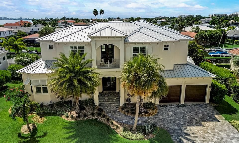 Welcome to your West Indies-style waterfront estate, offering island life at its finest! Epitomizing Southwest Florida's relaxing tropical lifestyle, this impeccably constructed 2018 custom built and fully furnished 4 BR & 4.5 BA residence is perfectly positioned with 105' of saltwater canal water frontage with the open waters of Sarasota Bay and the Gulf of Mexico just a quick ride away. As you step through the double doors into this light-filled home, you will notice its architectural details,, open concept floor plan, beautiful blonde hardwood floors, built-in cabinetry and exceptional integration of the indoor/outdoor living experience with expansive decks, covered sitting areas, a summer kitchen, gas fire pit sitting area and sparkling heated saltwater pool and spa. With over 4,300 square feet of coastal elegance on 2 levels, there is plenty of room for family and friends and the design includes 2 full Master Bedroom Suites, one on the main floor and the second one upstairs, giving you flexibility. There is even an elevator, which will make it very easy to get luggage from the 2nd floor to the garage. Your gourmet kitchen opens to the living and breakfast areas and features a spacious quartz-topped island, GE Monogram appliances, including a dual fuel convection oven and a large walk-in pantry. There is also a separate dining room to meet all your entertaining needs. The first-floor Master Bedroom suite offers two walk-in closets and a spa-like Master Bath with dual quartz-topped vanity, free-standing tub and spacious walk-in shower. From your Master Bedroom suite, step onto the lanai through the impact-glass sliding doors and enjoy a morning or evening swim, before relaxing in your private retreat. As you walk up the open staircase to the 2nd floor, you are welcomed by a center loft area, perfectly situated for shared activities with family and surrounded by 3 en-suite guest quarters (including the 2nd Master Bedroom Suite), all exquisitely furnished and decorated. Your upstairs Master Bedroom Suite features a private balcony with a gorgeous water view, 2 walk-in closets and a Master Bath with capacious walk-in shower and separate soaking tub. Additional features include an open office area and large laundry room and guest powder room on the main level, plantation shutters throughout, power blinds with remote on main level, retractable screen on deck, screened-in outdoor sitting and dining area, lush tropical landscaping including a fenced backyard, zone dual A/C and oversized 2-car garage with workbench, on-demand gas water heater and plenty of room for all your outdoor toys. Pamper your guests with a boat ride (power boat is available for purchase under a separate purchase agreement), leaving from your private dock with 10,000 lb boat lift (water and electricity are right there at the dock) and make your way to the open waters of Sarasota Bay. Country Club Shores is one of Longboat Key's most prestigious neighborhoods, offering deep-water canals and exclusive deeded beach access (across Gulf of Mexico Drive) to its residents. With easy access to St. Armand's Circle with its quaint shops and restaurants and just a short drive away from the cultural amenities of Sarasota, Longboat Key residents enjoy the best our area has to offer. Schedule your personal showing today!