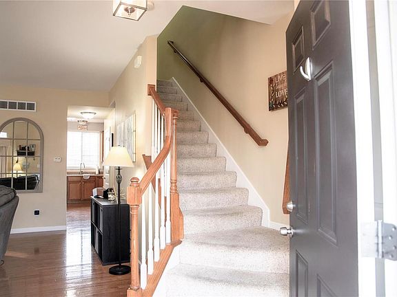 Don't miss this opportunity to own a beautiful maintenance free home! End unit with dormers and brick-front, fenced in backyard and 2 car garage. Walk in the spacious living room on hardwood floors, lots of natural lighting through-out the home. This Eat-in Kitchen hosts beautiful 42 inch cabinets, pendent lighting over isle, tile back splash and a Palladian window and a separate pantry. Upper level hosts a master-bedroom suite with a walk-in closet, upper level laundry room, bonus loft/sitting area and second bedroom with an attached full-bath. Basement is partially finished with 2 rooms/sleeping areas. Located right of 364, close to all major stores and walking distance from CVS. Come and check this place out!