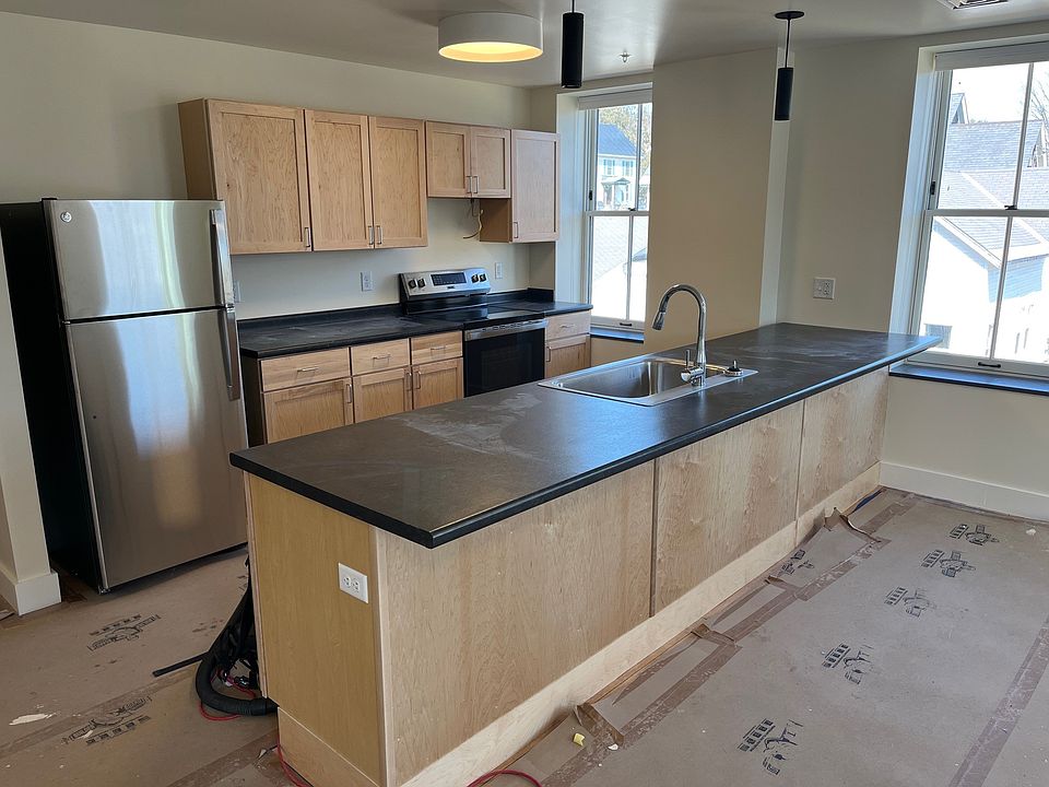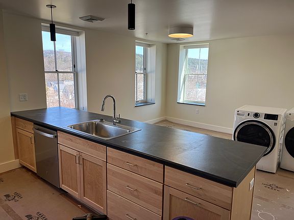 2 Bed, 1 Bath, upper level apartment overlooking Passumpsic River in downtown St. Johnsbury. Available starting 4/12/25. Building was completely renovated in 2025. The layout features an open kitchen, dining, living area with a peninsula for food preparation and gathering. Numerous windows and high ceilings bring in substantial natural light. Restored original hardwood flooring. There are closets in every bedroom as well as throughout the apartment. Individually controlled heating and cooling ducted throughout apartment. Clothes washer & dryer in-unit. Stainless kitchen appliances including dishwasher, refrigerator with ice maker, and combination oven / range. On-call property management. Owner pays water, sewer, and waste. Tenant pays electric and internet / cable. All tenants bringing pets will need to complete a pet addendum to their lease with additional details and expectations, and may be subject to additional fees or deposits. One on-site parking spot included.