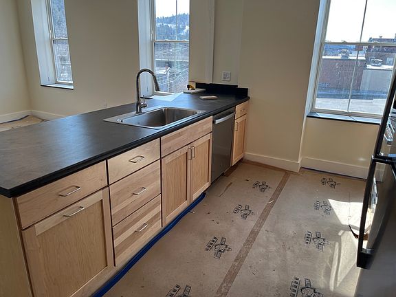 2 Bed, 1 Bath, upper level apartment overlooking Passumpsic River in downtown St. Johnsbury. Available starting 4/12/25. Building was completely renovated in 2025. The layout features an open kitchen, dining, living area with a peninsula for food preparation and gathering. Numerous windows and high ceilings bring in substantial natural light. Restored original hardwood flooring. There are closets in every bedroom as well as throughout the apartment. Individually controlled heating and cooling ducted throughout apartment. Clothes washer & dryer in-unit. Stainless kitchen appliances including dishwasher, refrigerator with ice maker, and combination oven / range. On-call property management. Owner pays water, sewer, and waste. Tenant pays electric and internet / cable. All tenants bringing pets will need to complete a pet addendum to their lease with additional details and expectations, and may be subject to additional fees or deposits. One on-site parking spot included.
