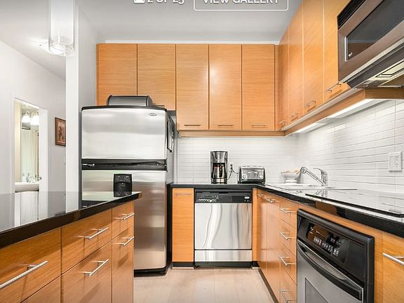 Spacious 1-bedroom + den layout (large 772 sq feet), ideal for a small family or work-from-home setup Bright, open-concept living space with large windows and natural light Kitchen equipped with modern appliances One designated parking stall included Electric vehicle charging station available in common areas (paid) Two keys + two fobs for unit and building access Two guest parking signs provided Owner pays for water and trash removal. Other things like electricity, internet etc. on tenant.
