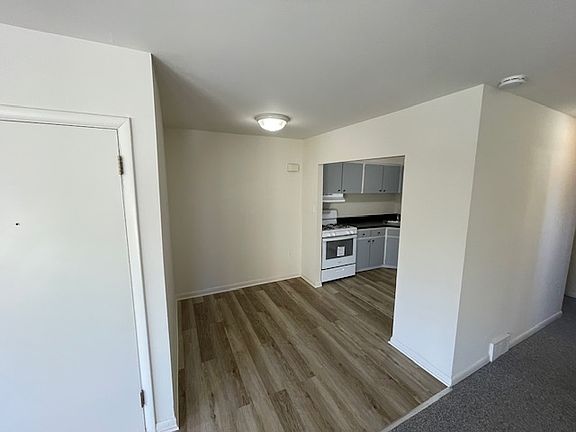 Two unit buildingQuiet side-building unitFirst floor apartmentEat-in kitchen areaNew vanity and toiletNew cooktop rangeOff street garage parking