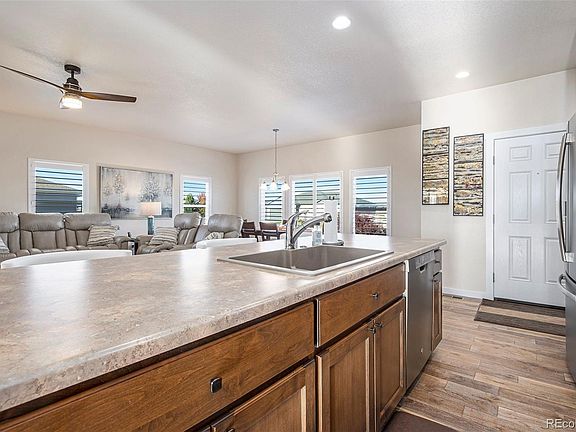 Gorgeous 2 bedroom, 2 bath, 4 car garage with a den ranch home is calling your name! This home and yard are in pristine condition, you won't find one better. Open concept living room, dining room and kitchen perfect for entertaining. The primary bedroom is spacious with its own private bath with a large walk in shower and a double sink vanity, it also has a large walk in closet. The secondary bedroom also is good sized with a closet right next to the full hall bath. Between the two bedrooms is a den that can be used as an office, reading nook, etc. There is an unfinished basement to make your own. The house has many updates and bonus features including professional landscaping front & back, stamped concrete patio, hot tub, awning on the back patio, plantation shutters through out, and the exterior was painted last year. All the garage cabinets are included for abundant storage. Enjoy your private hot tub along with gorgeous mountain views.
