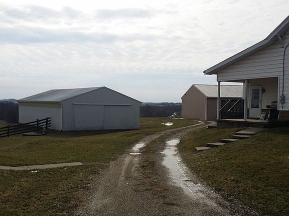 DOWN ON THE (mini)FARM is the lifestyle to be lived in this 1925 farm house that has had some updates, remodels, and additions - like the 'all window insulated 4 season room' on the rear of the home to watch the morning sunrises. This sun room is right off the added family room with built in wooden shelves, cabinetry, wood burning fireplace, with a full bathroom for convenience. U shaped kitchen, breakfast counter, dining area, built ins, living room, more built ins, remodeled master bedroom with large walk in closet and bathroom with walk in shower complete the first floor. Second floor offers storage galore, 2 more bedrooms, and another full bath. Full basement houses the 2011 Geo-Thermal Furnace & Cooling System, built in generator, 2 hot water tanks, water softener, and laundry hook ups. Roof on house & 3-4 car detached garage is approx. 5 yrs old. Property also has 56' x 32' pole barn w/ electric and heater, and a 60' x 40' cattle pole barn w/ a 36' x 28' rear addition. Acreage is mostly rolling terrain farm land w/ small pond and is all fenced. All mineral rights owned will transfer. One line of free gas, too! Priced to sell!