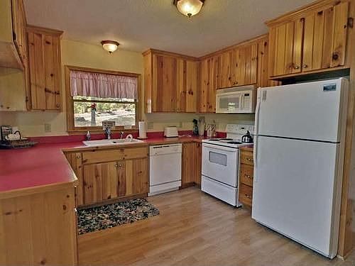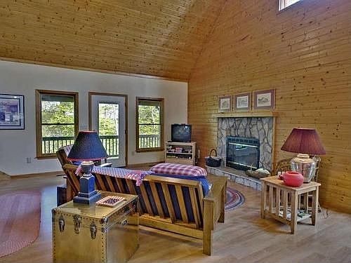 Spacious &Attractive 2/2 Cabin-South Side of town. Great views from the front & back sides. Great mix of wood & sheet rock. Great room w wood burning stone fireplace, plus a roomy dining area. Loft, tile baths, & nice closet space. This cabin comes fully furnished w adorable dcor. Covered deck to enjoy the views, and a full basement stubbed for 3rd bath. Did I say great views???? 12/07/12