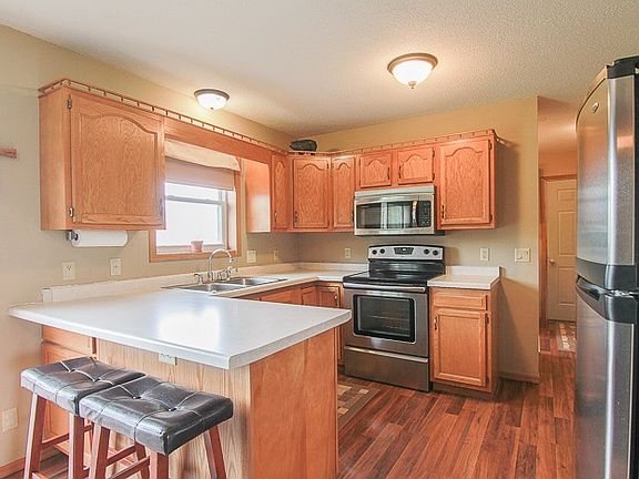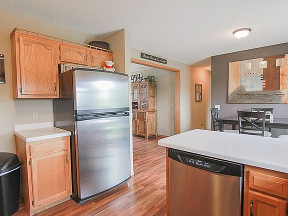 Updated 2 bedroom walkout ranch home on .6 acres! Eat in kitchen, oak cabinets & newer SS appliances staying! Dining area off the kitchen, sliding patio doors to a deck with beautiful countryside views! LR boasts great natural light. Spacious master bedroom! ML laundry room with 3/4 bath and newer W/D staying. Basement has been recently finished to include a large family room & a non-conforming 3rd BR. 2 car attached garage + a detached 22' x 24' garage. Backyard patio & deck are great for entertaining!