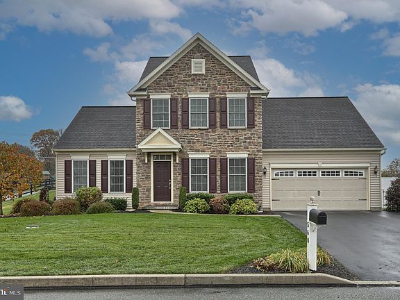 Meticulously maintained Arcadia "A" model by Berks homes in desirable Arbor Green neighborhood (Palmyra schools). This 2500+ square foot home features an open floor plan with a large first floor owner's suite which entails an attached office/sitting room/nursery. Cozy up in the family room with gas fireplace, which opens up into the breakfast area and kitchen, making this home great for entertaining. Enter the formal dining room through archways and notice the tray ceiling which adds charm and character. Enjoy the holidays cooking in this kitchen with Corian counters and an island offering plenty of counter space. Engineered wood floors throughout most of the first floor. The second floor features 3 additional bedrooms and a full bath with a small loft area. Main level laundry. Private backyard with stamped concrete patio.