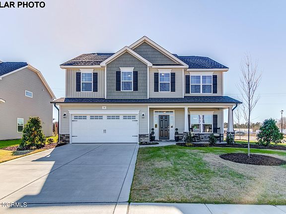 THE POOL IS NOW OPEN! You will love this exquisite Drayton floorplan, in Sneads Ferry's most sought after neighborhood, Oyster Landing! Featuring 4 bedrooms and 2 and a half baths with a 2 car garage and tons of curb appeal. The welcoming foyer adjoins the formal dining room. With plenty of cabinet and countertop space, you'll enjoy the practicality of the island and spacious kitchen nook overlooking the backyard. Blanketed by natural sunlight and centered with a fireplace, this living room provides a perfect relaxation retreat. The Kitchen boasts ample cabinet and countertop space, a spacious dining nook overlooking the backyard, and upgrades such as granite countertops and stainless-steel appliances. For ultimate comfort and accommodation, the Owner's Suite features an enormous walk-in closet and a spa-like Owner's Suite Bathroom complete with a garden tub, walk-in closet, and dual sinks. Located just down the hall are four additional spacious bedrooms surrounding a second floor living room. Don't miss your opportunity to own this fabulous home today! *Buyer to verify schools. Room dimensions and heated square footage may vary. Builder reserves the right to alter floor plan and features. Photos and cut sheets are representations only.