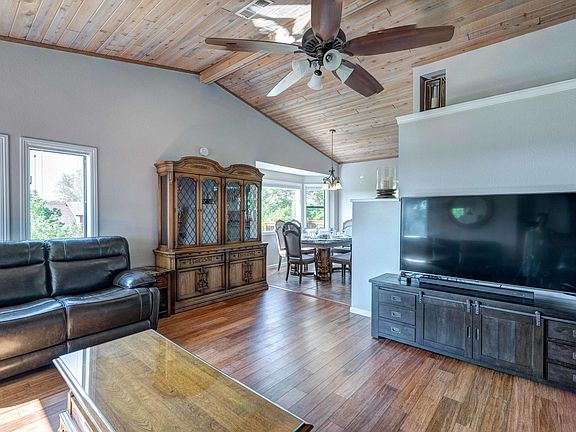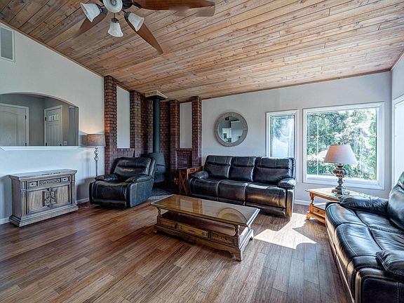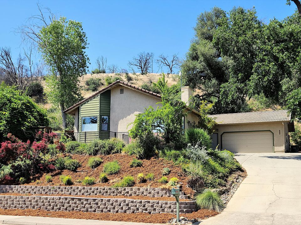 Amazing location with amazing views! Beautifully updated Lake Redding Estates home on .67 acre elevated lot situated to take in views of Lassen Peak, top of the Sundial Bridge, majestic train trestle over the Sacramento River, and the greenery of Redding. 3 bed/2 bath at 1560 square feet - Owners renovated to make the home a vacation rental 3 years ago, including kitchen/bath updates, new paint, new flooring throughout, beautiful vaulted wood ceiling, fixtures, fans, new master shower and more. Spacious decks in back & on side of home are only 3 years old. Back yard includes newer gazebo on concrete slab, rock stream, with a variety of foliage, including large oaks, some fruit trees, jasmine, wisteria, native plants & more. Home is being sold AS-IS.