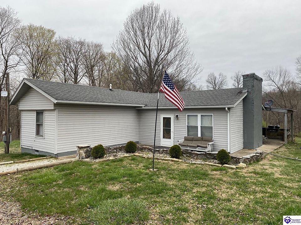 2 bedroom, 1 bath home with garage on 15.9 acres. This real estate has a lot to offer. The home is a single-wide mobile with additions, large family room, concrete front and back patios with grilling area and back deck. Other improvements include a detached garage with metal siding and overhead door, county water, garden area, gravel circle drive, and an RV pad with hook ups. Approx. 3.5 acres are open and the remainder is wooded with mature timber. The location is great also, as it is only 5 minutes from the city of Brandenburg.