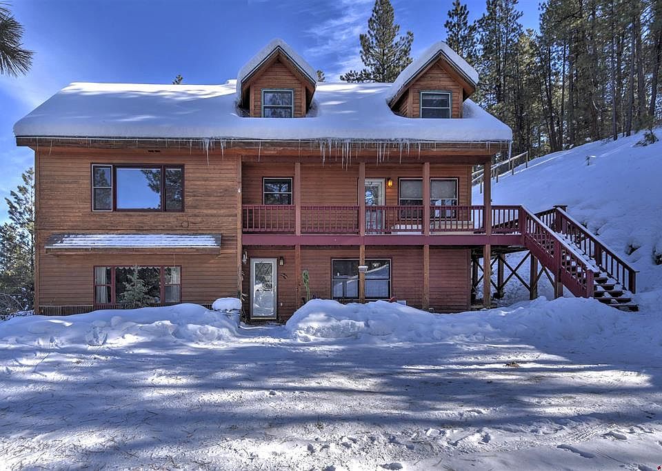 This is the retreat you’ve been waiting for just 6 miles from town! Beautifully situated with peace and quiet, this Colorado-style home on 3-acres with a small pond set amoung the Pines and Aspen trees. This beautiful 2,842 square feet home features 3 bedrooms, 3 bathrooms, office, bonus room and outside deck living. The previous seller has updated new light fixtures in most of the rooms, new refrigerator, , new septic pump, new installed closet in master bedroom, new interior paint, touched up trim of exterior. The home is located in Rafter J, all on paved roads and only 6 miles from downtown Durango. The home is tucked away off the road to ensure privacy and peacefulness. You will love the living room with windows on 3 sides and vaulted ceilings making it one of the best spaces for your family to share. The light just pours in here and it's so inviting. The private back deck is accessible from the living room; enjoy the outside living and the views in all directions. The wood stove heats much of the house in the cool winter months,and adds coziness to the living area. The kitchen is conveniently located between the dining and living room with a large open wall giving even more light throughout the living area with a roomy walk-in pantry, and newer refrigerator. The privately located master suite is the only room on the upper level and includes 2 full-size closets, bathroom, plus a small room that could be used as an office, nursery, or reading room. The lower level consists of a bedroom, bonus room or is it an office. A full bath, and laundry room with new washer and dryer included, and a lower level that the former garage was converted to an extra living space that could easily be converted into a mother-in laws quarters. The current sellers replaced the hot water heater 3 years ago, new deck in 2020, new stove 3 years ago, washer dryer new in 2020. This level is great for guests, teenagers, roommates, or in-laws with its own separate entrance. You will love being surrounded by tall pines yet being cleared enough to be open and sunny. This area offers a beautiful wilderness environment, ideal for sharing outdoor adventures yet close to downtown.