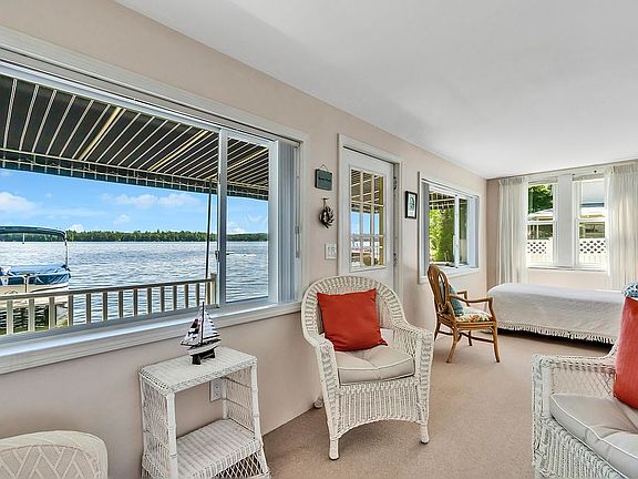 Charming Square Pond cottage with breath taking lake views, boat dock, and sandy beach awaits you. Enjoy sunrises every morning in the all-season porch, cocktails on the deck under the awning, or fall asleep to the soothing sounds of lapping waves on the beach. This well-maintained home offers, year-round living, comes fully furnished, and move-in ready only steps away from 55’ of water frontage. It can sleep six people and features a queen bed in the master bedroom with a large picture window and stunning views of Square Pond, a queen and twin bed in the second bedroom and a twin bed on the porch. You’ll appreciate this open concept cottage that has new oak flooring in the living/dining room. The spacious kitchen features a Jenn Air Gas/Electric Stove and both Refrigerator and Dishwasher were replaced in 2020. The bathroom also includes a new washer and dryer in 2020. The roof was replaced in 2018 with a 50-Year Aluminum Shingle roof. Convert the garden shed into a fun playhouse for the kids. The boathouse easily stores 2 kayaks and lots of water toys included with the cottage. Above the boathouse is a single-car garage with plenty of extra off-street parking for 4 more cars. A 16’ Avalon “Catalina” pontoon boat with a 25hp Mercury outboard is available for purchase separately. Soaring eagles and the call of loons awaits you in this waterfront cottage! Buyer's Agent Fee – 2%