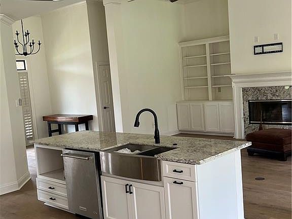 This beauty has just been renovated!! 3 BR/ 2 BA features an open floor plan, entertainer's delight, built-in bookshelves and a gas fireplace. Freshly painted throughout, 9x8 office, spacious covered porch, primary BR has two walk-in closets, 2 car garage and carpet free!