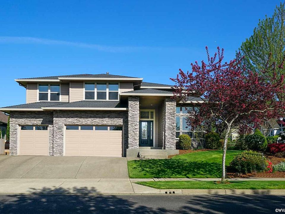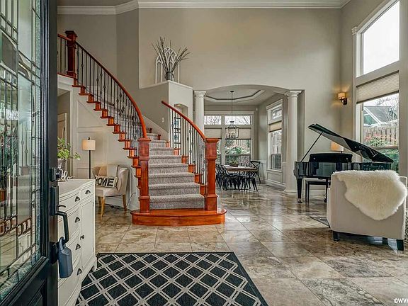 Accepted Offer with Contingencies. Located in the popular Abiqua Heights with gorgeous common area! This 4 bedroom home features stunning ledge stone front entry opens to a grand sweeping staircase w/soaring ceilings & wide open entry! Lrg study/den on the main level, plus ample space for everyone upstairs w/3 bedrooms, large bonus/family room or 4th bedroom + a landing area large enough for multiple uses! Lrg covered patio perfect for entertaining! Travertine floors, Stunning formal dining with two story high ceilings.